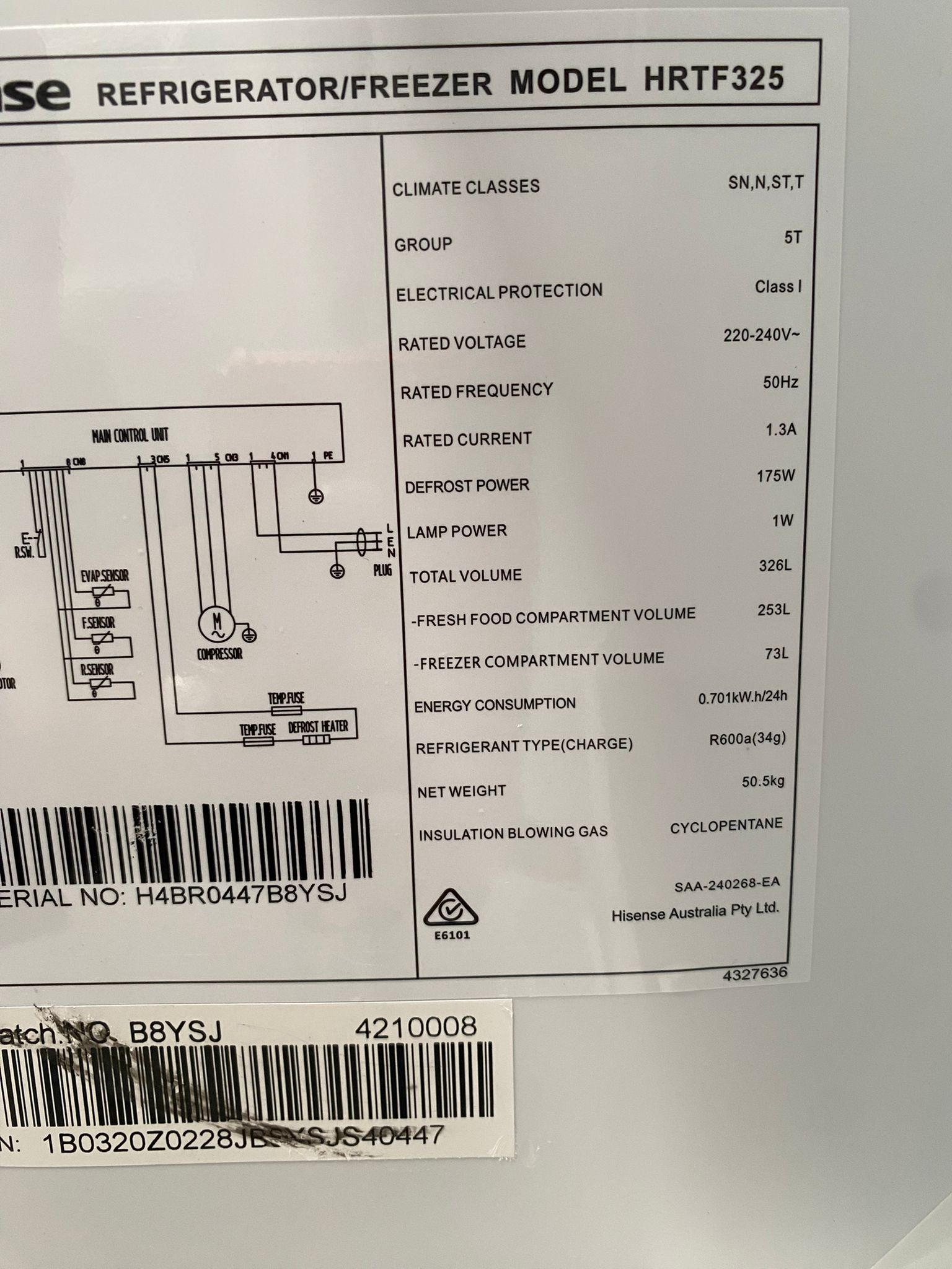 • Fridge Volume: 253 L