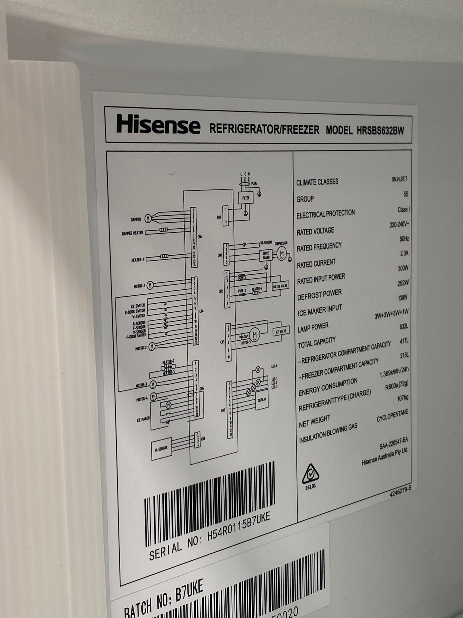 • Total Capacity: 632 L